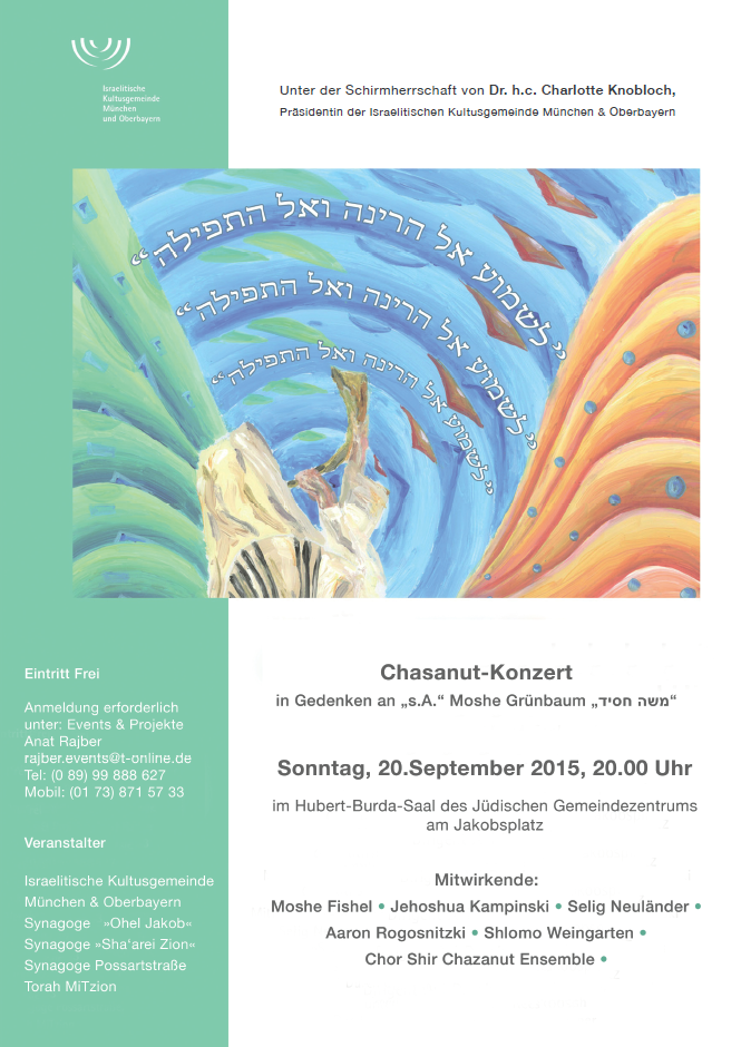 21:00 und 22:15 Uhr: Konzert des Synagogenchors unter Leitung von David Rees (je 30 Minuten), Begleitung am Piano: Luisa Pertsovska Weiterlesen »