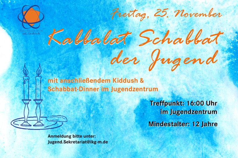 mit anschließendem Kiddusch und Schabbat-Dinner im Jugendzentrum.